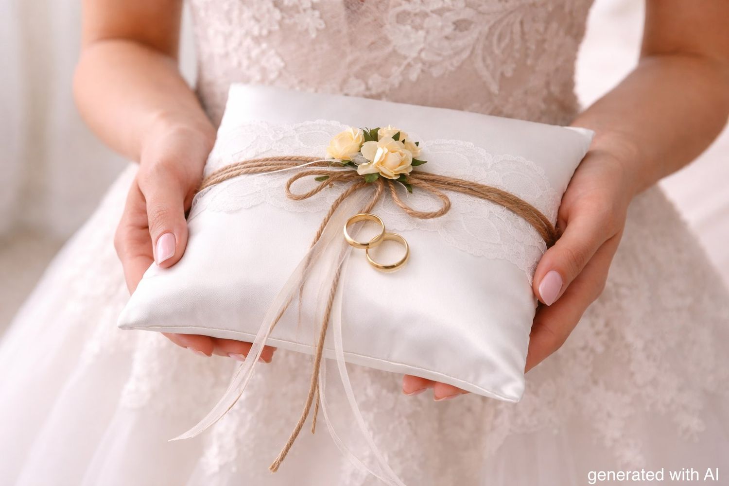 Ringkissen Vintage Creme – Hochzeit mit Spitze, Kordel & Rosen