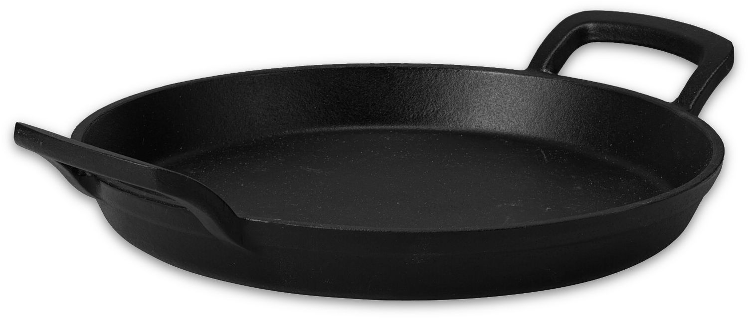 Das gusseiserne runde Servierschale und Bratpfanne mit 2 Seitengriffen - ideal für Grill, BBQ Liebhaber und Camper