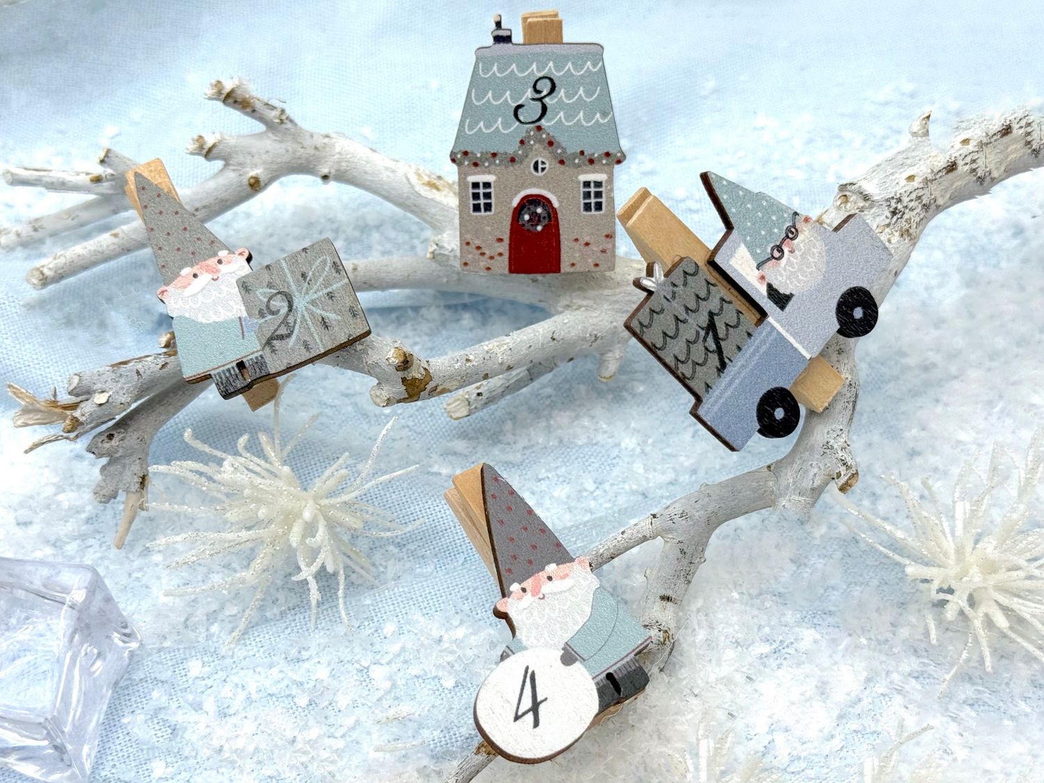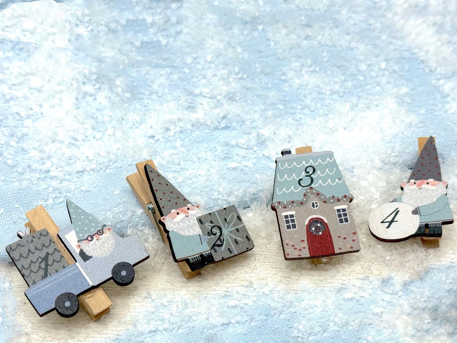 Set aus 24 Holzklammern mit Wichtelmotiven und Zahlen– perfekt für DIY Adventskalender mit Wichtel Zubehör