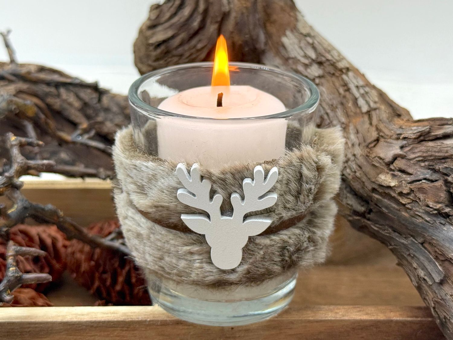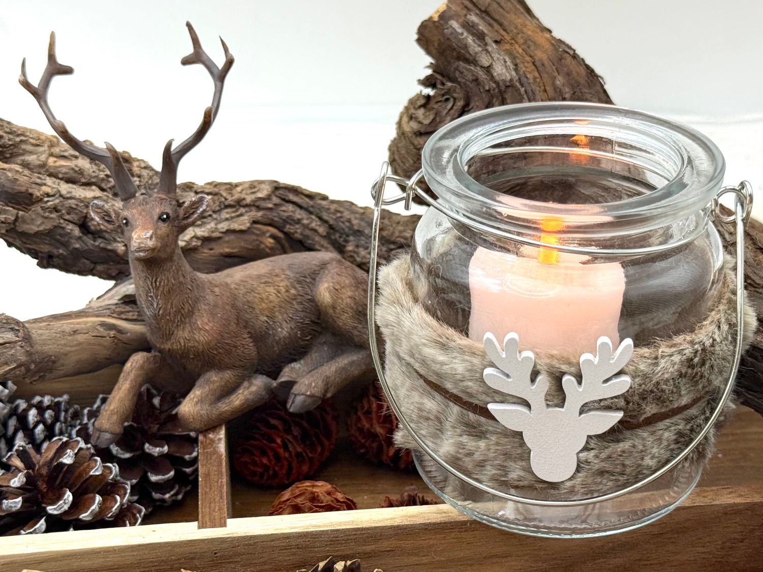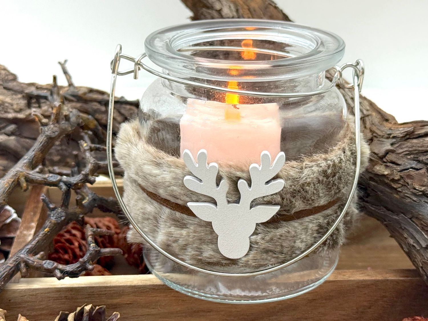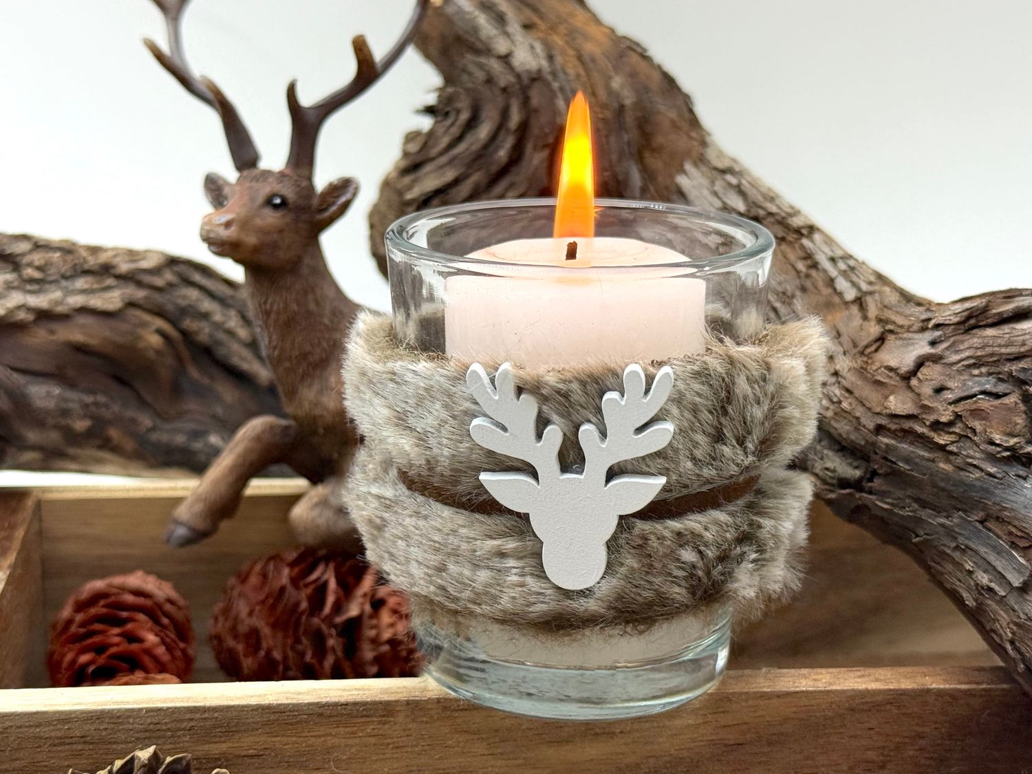 Stilvolles Windlicht-Set mit Hirschmotiv – Handgefertigte Deko im Scandi-Style