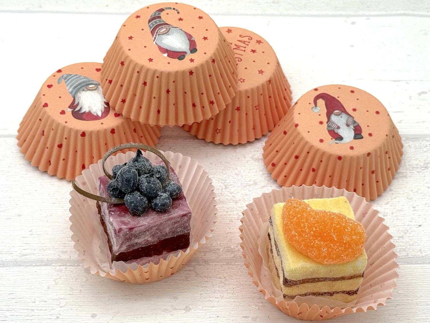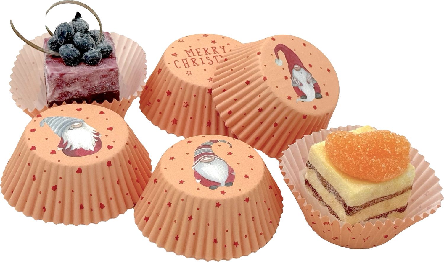 100 Stück dekorative Muffinförmchen für Weihnachten in Geschenk Box mit Wichtel-Motiven - ideal für Adventsbäckerei mit Kindern