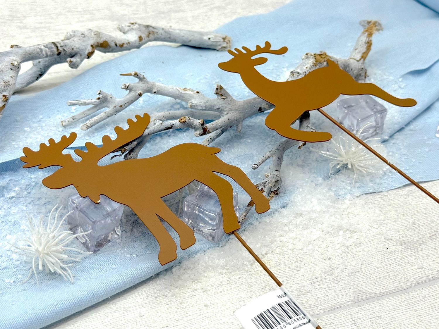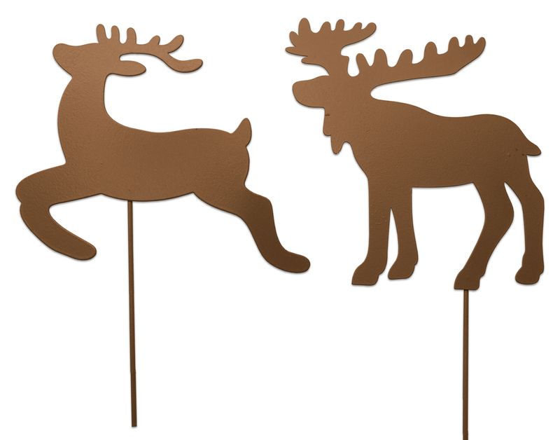 Maße: Hirsch: ca. 12,5cm x 0,1cm x 32cm (LxBxH), Elch: ca. 11,5cm x 0,1cm x 37,5cm (LxBxH), Stablänge: ca. 24cm
