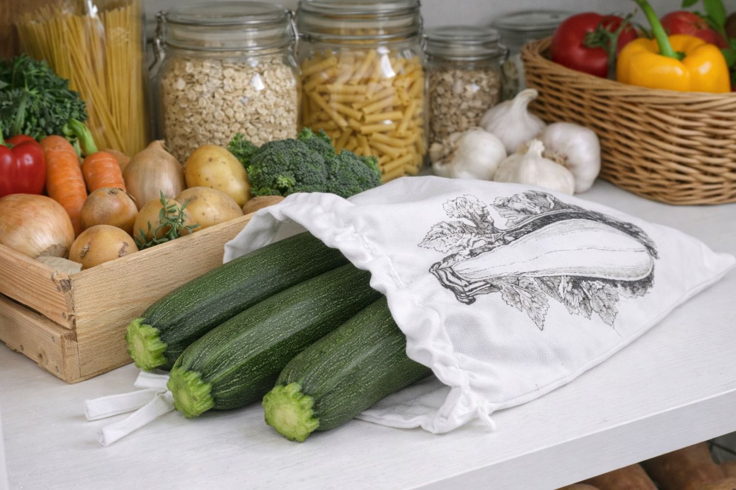 Wiederverwendbarer Stoffbeutel – ideal für den umweltfreundlichen Transport und die Aufbewahrung von frischem Gemüse