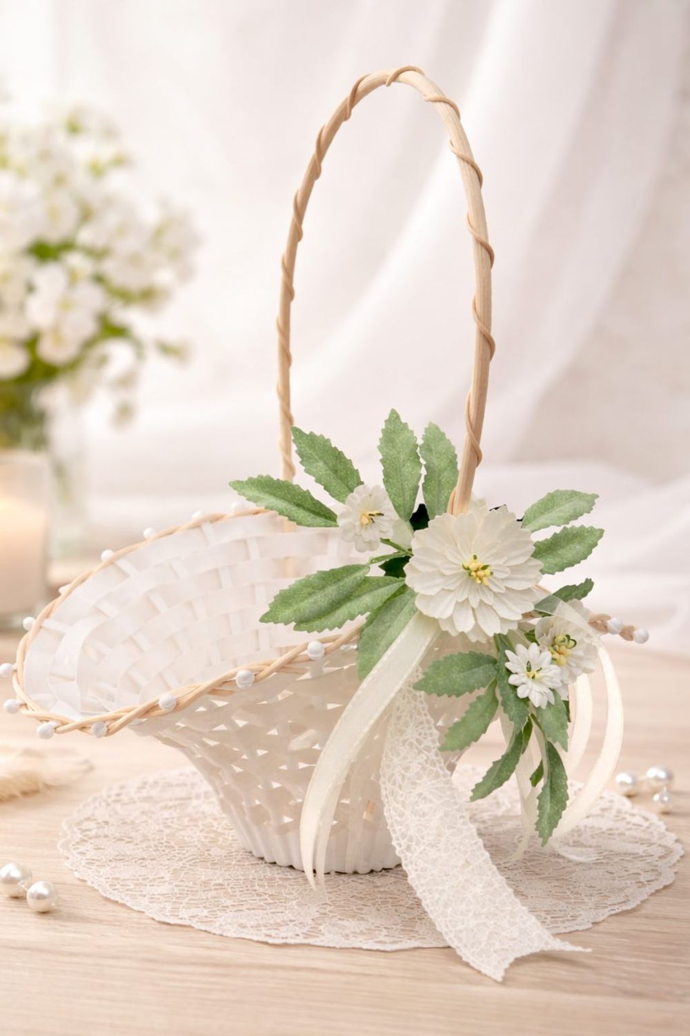 Blumenkinder Streukörbchen für Hochzeit – Blumenkorb in Creme mit Spitze & Blüten Boho VintageÂ
