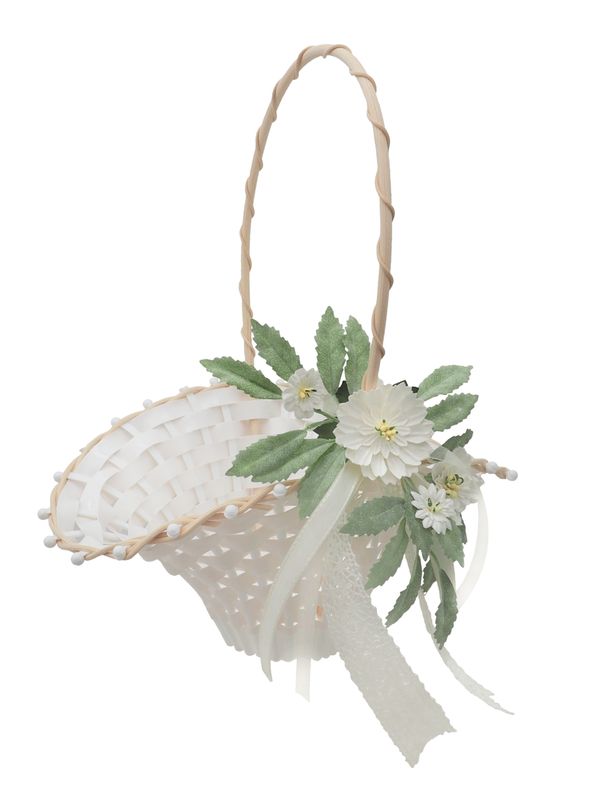Ein Streukörbchen - Blumenkörbchen die Blumenkinder, verziert mit künstl. Blättern, zarten cremefarbenen Bändern, Spitze und künstlichen Blüten