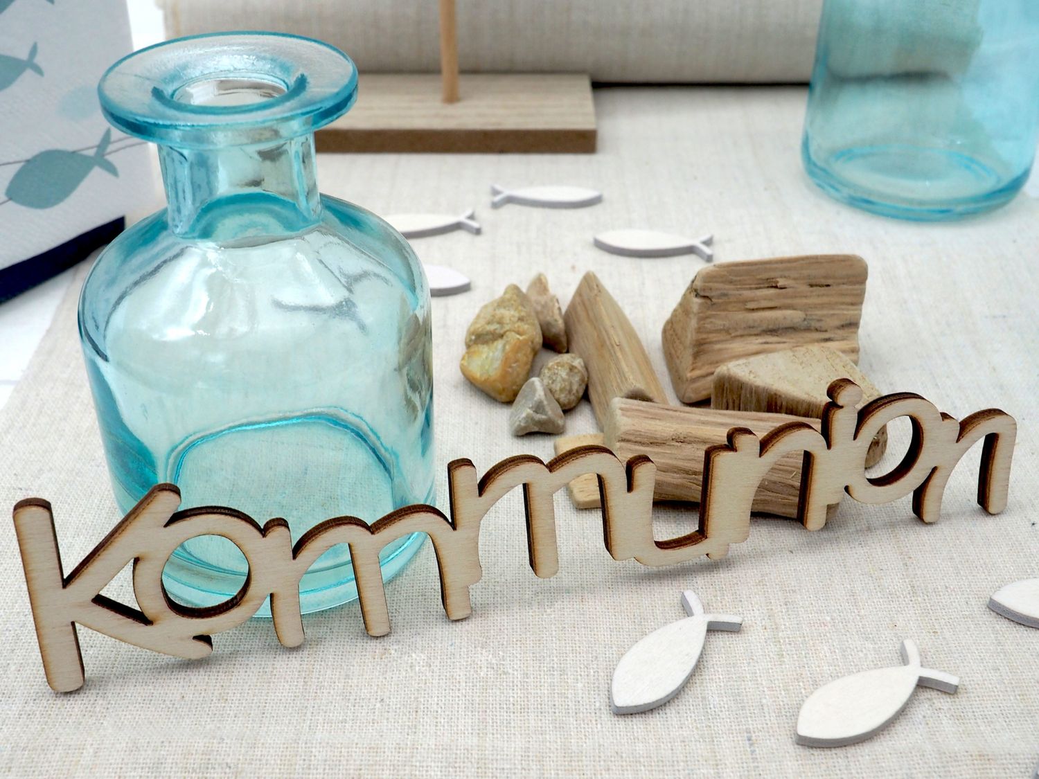 SCHRIFTZUG "KOMMUNION" ODER "KONFIRMATION" AUS HOLZ