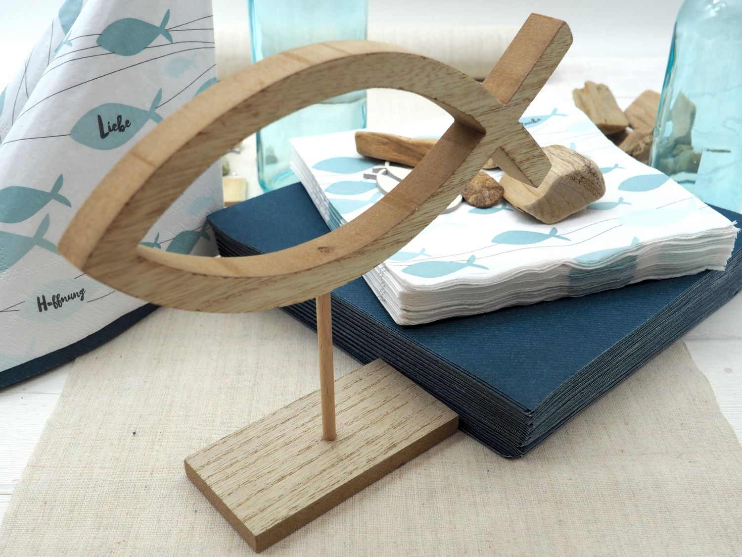 20 STÜCK SERVIETTEN MIT MOTIV "FISCHE GLAUBE, LIEBE, HOFFNUNG"