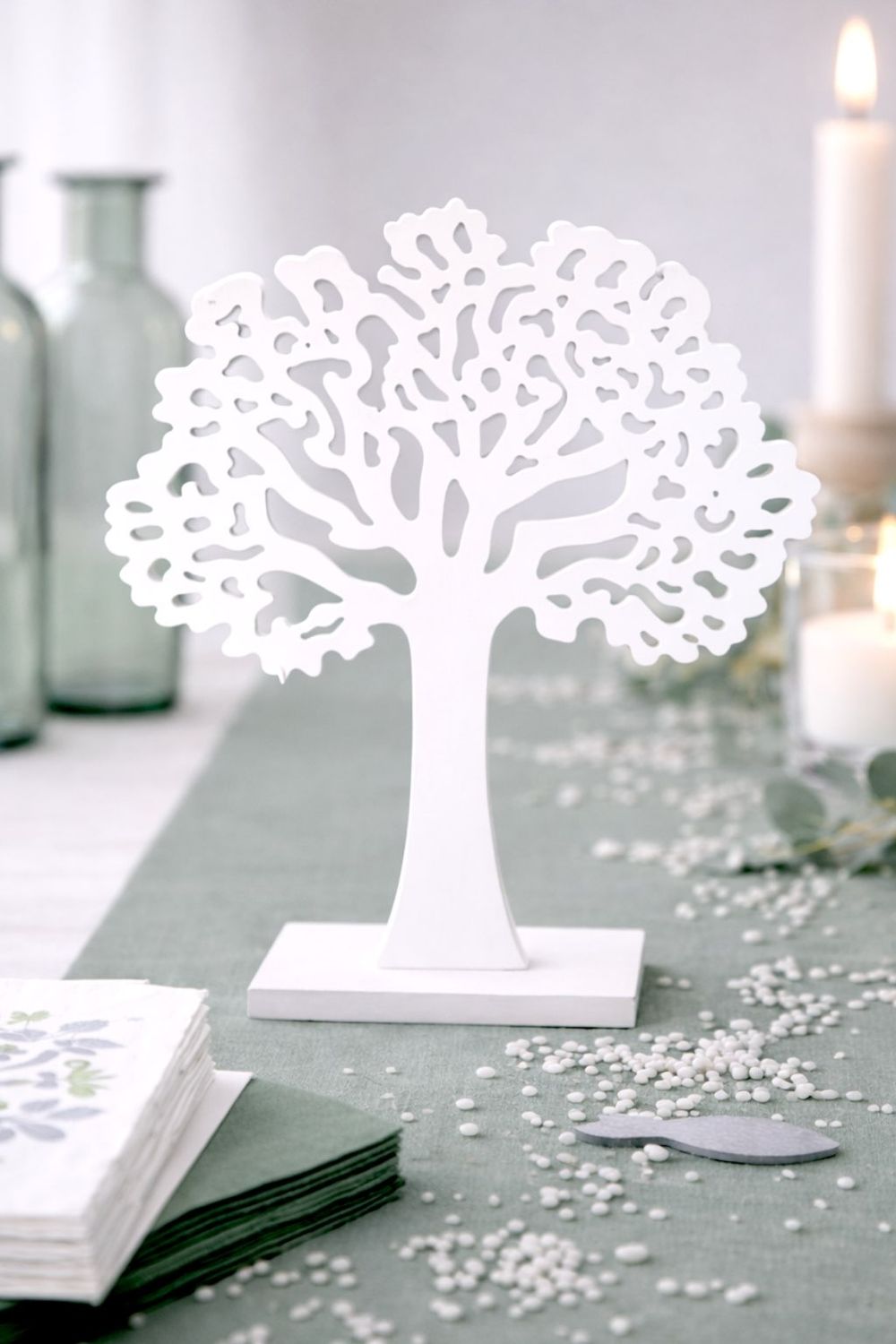 Dieses Tischdeko Set mit dem symbolstarken Motiv Lebensbaum (steht für Glaube,Wachsturm, Kraft & Verbundenheit) sorgt für eine stilvolle Festtafel.