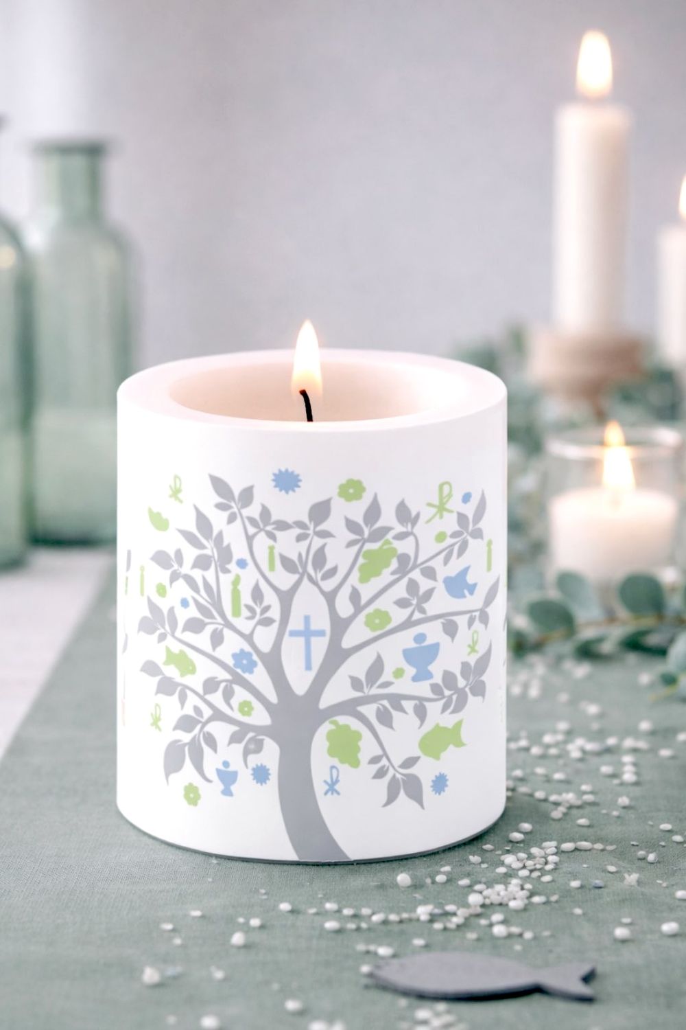 EINE KERZE MIT MOTIV "BAUM DES LEBENSI" OHNE DUFT