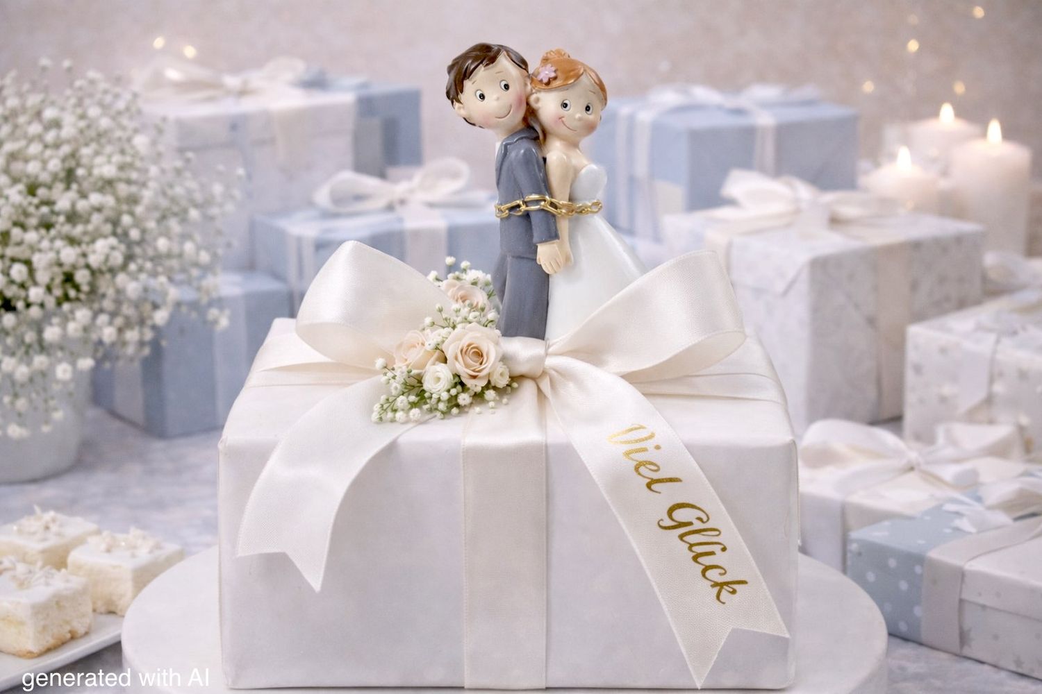 Ein Tortenfigur mit Hochzeitspaar in Ketten