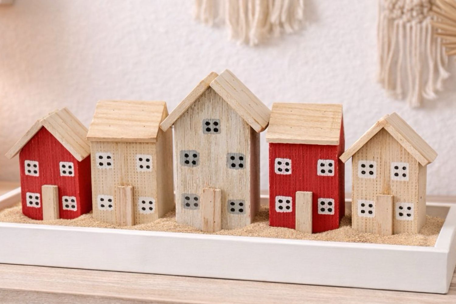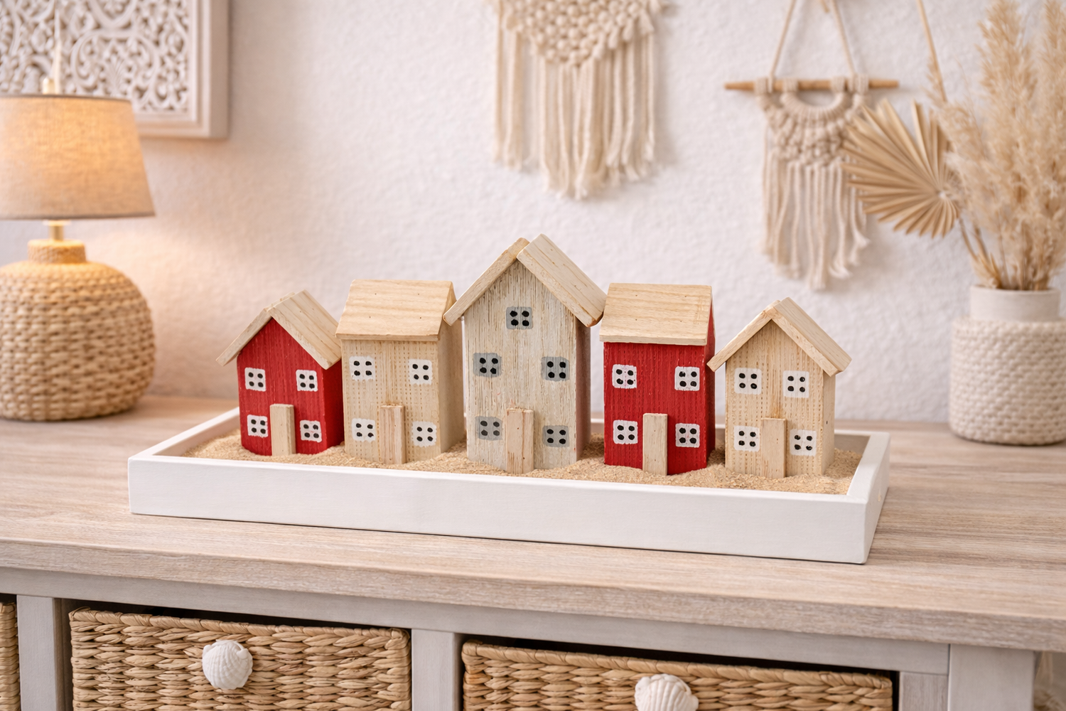 Dekorative Treibholz Häuser in Natur und Rot– Häuserreihe mit Maritimer Charme für Ihr Zuhause