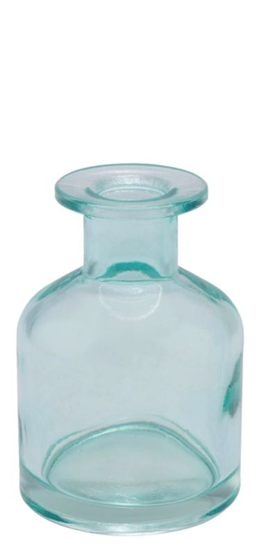 Diese dekorative Vase aus gefärbtem Glas besticht durch ihre helle, freundliche Farbgebung in Blau und Türkis.