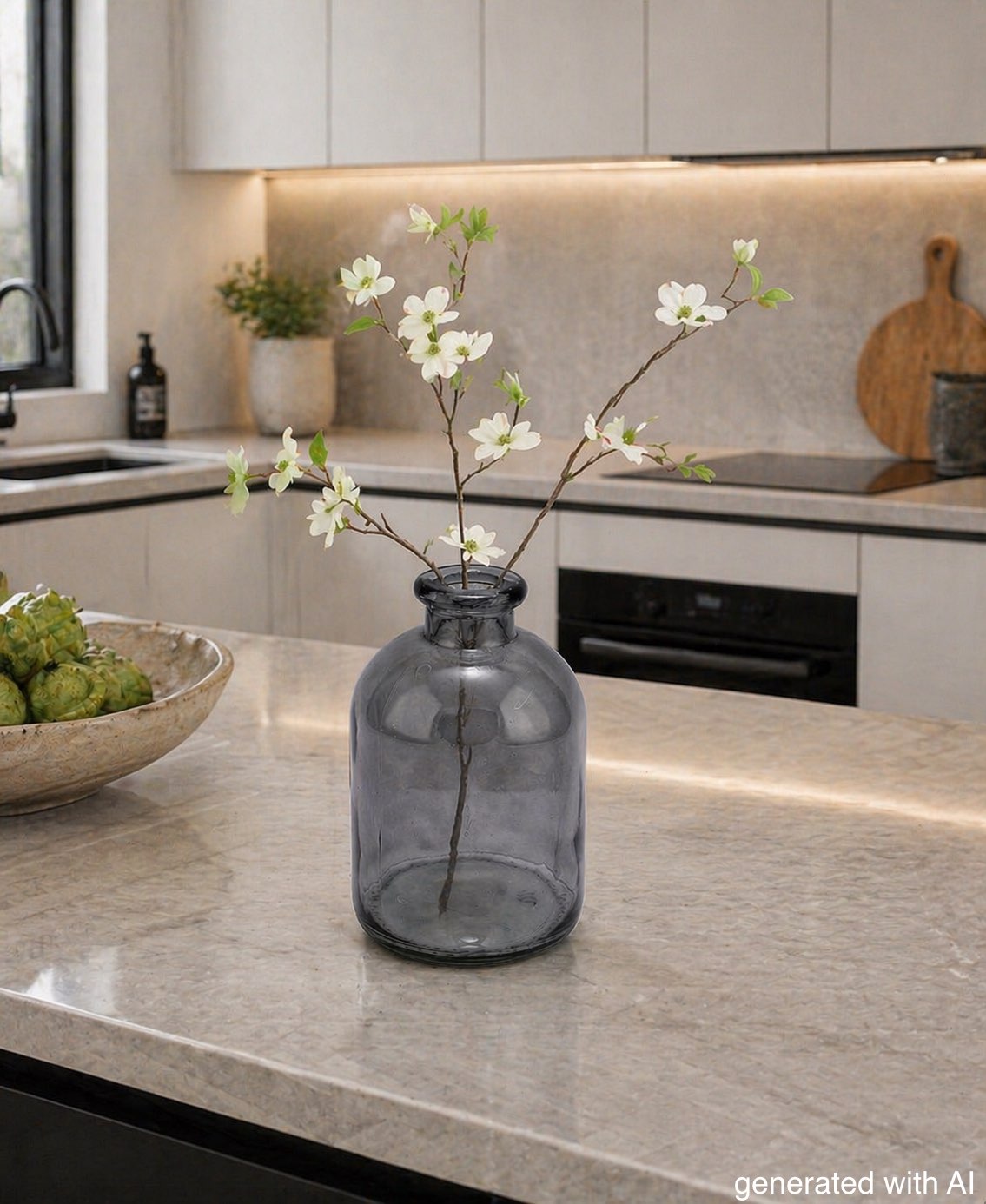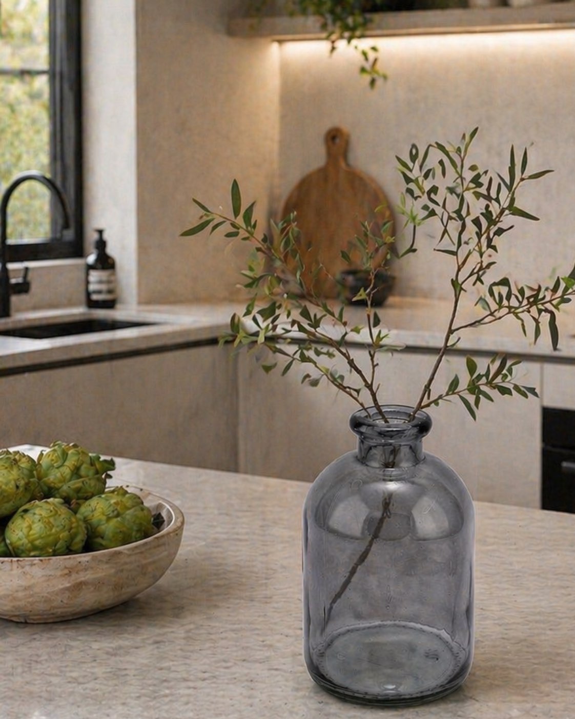 Deko Vase Grau Transparent – elegante Glasvase mit schmaler Öffnung