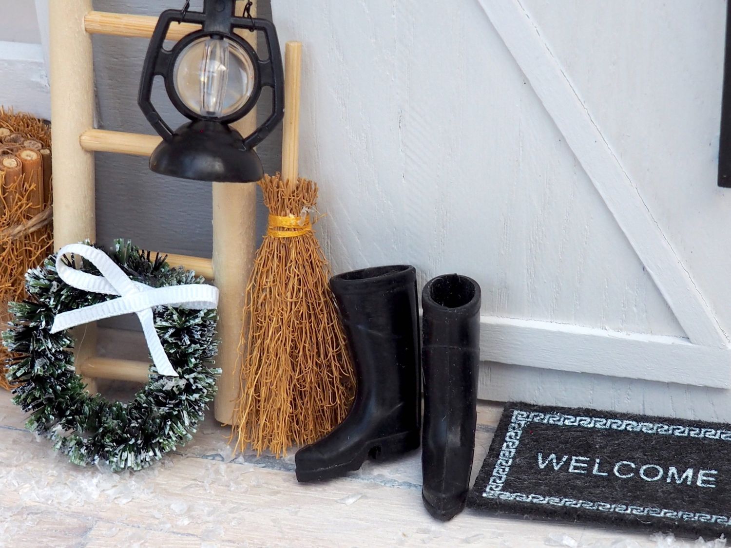 Miniatur-Gummistiefel in Schwarz als Wichtel oder Puppenhäuser Zubehör