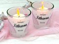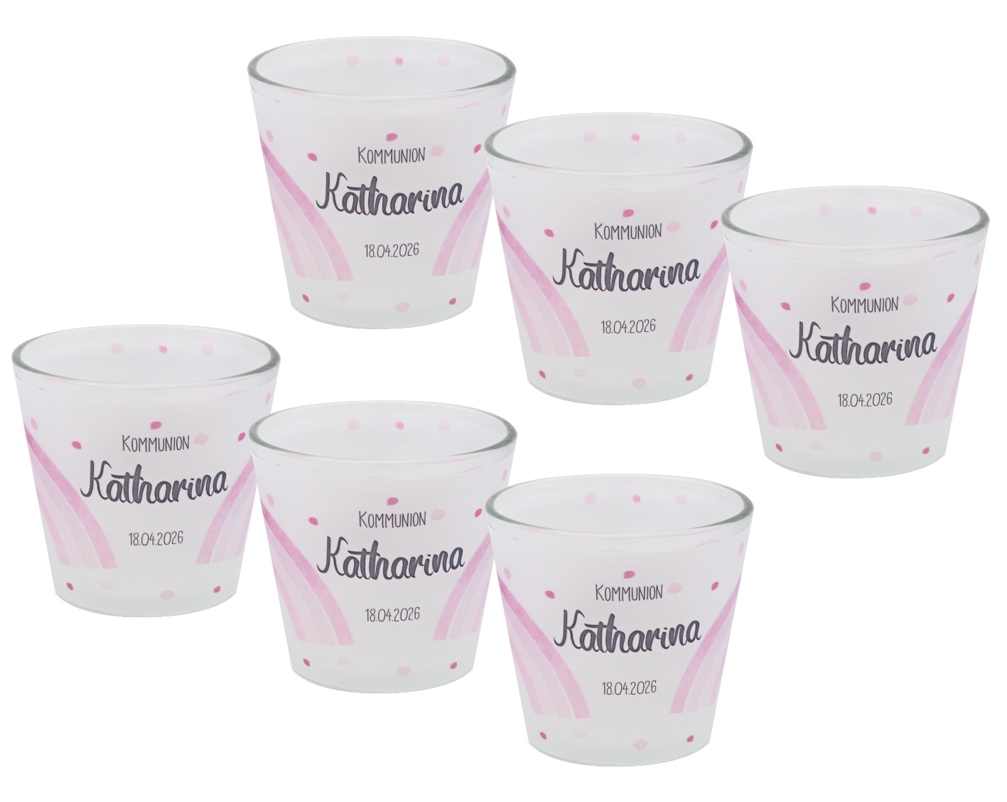 Windlicht Banderole Rosa Regenbogen Kommunion Konfirmation Taufe Tischdeko PERSONALISIERT 7,5cm H