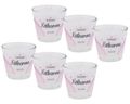 Windlichter aus Glas mit einer transparenten Banderole, die mit einem Regenbogen in Rosa verziert sind und personalisiert werden können.