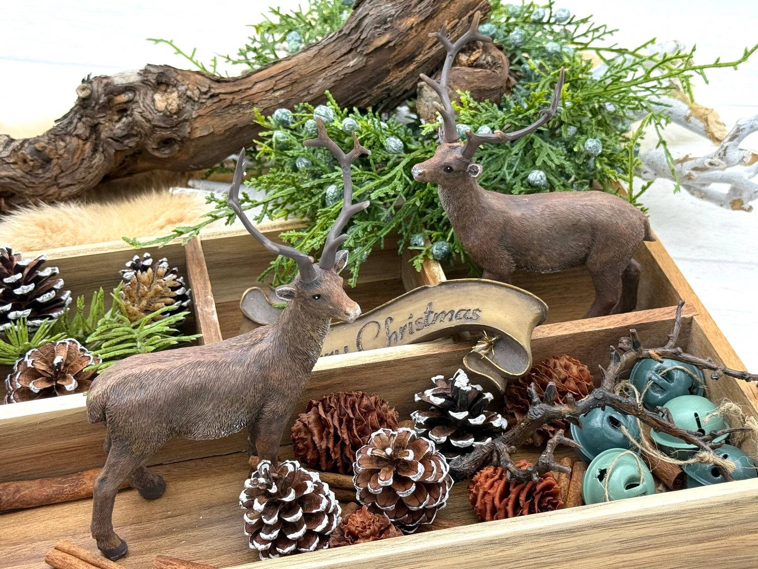 Ob auf dem Adventstablett, der Fensterbank oder als Tischdeko – die Hirsche setzen stilvolle Akzente und verleihen jedem Arrangement eine edel-rustikale Note.